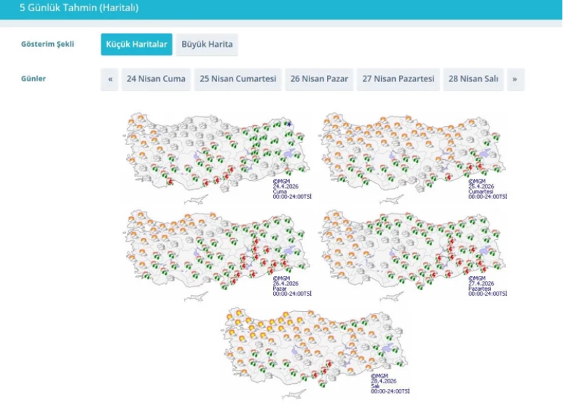 Meteoroloji Genel Müdürlüğü tarafından yapılan son değerlendirmelere göre: Ülkemiz genelinin parçalı ve çok bulutlu, Akdeniz (Hatay hariç), İç Anadolu’nun güney